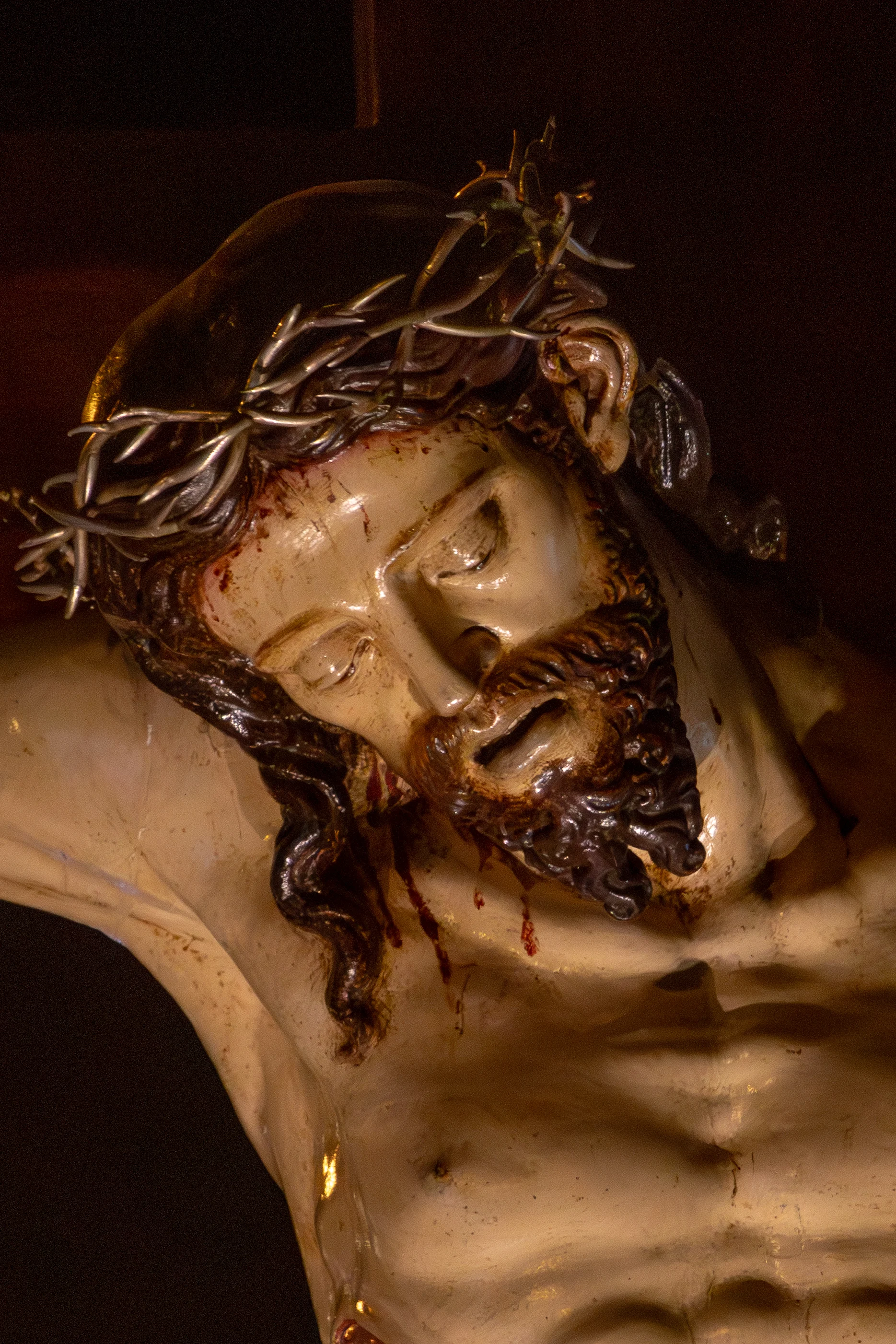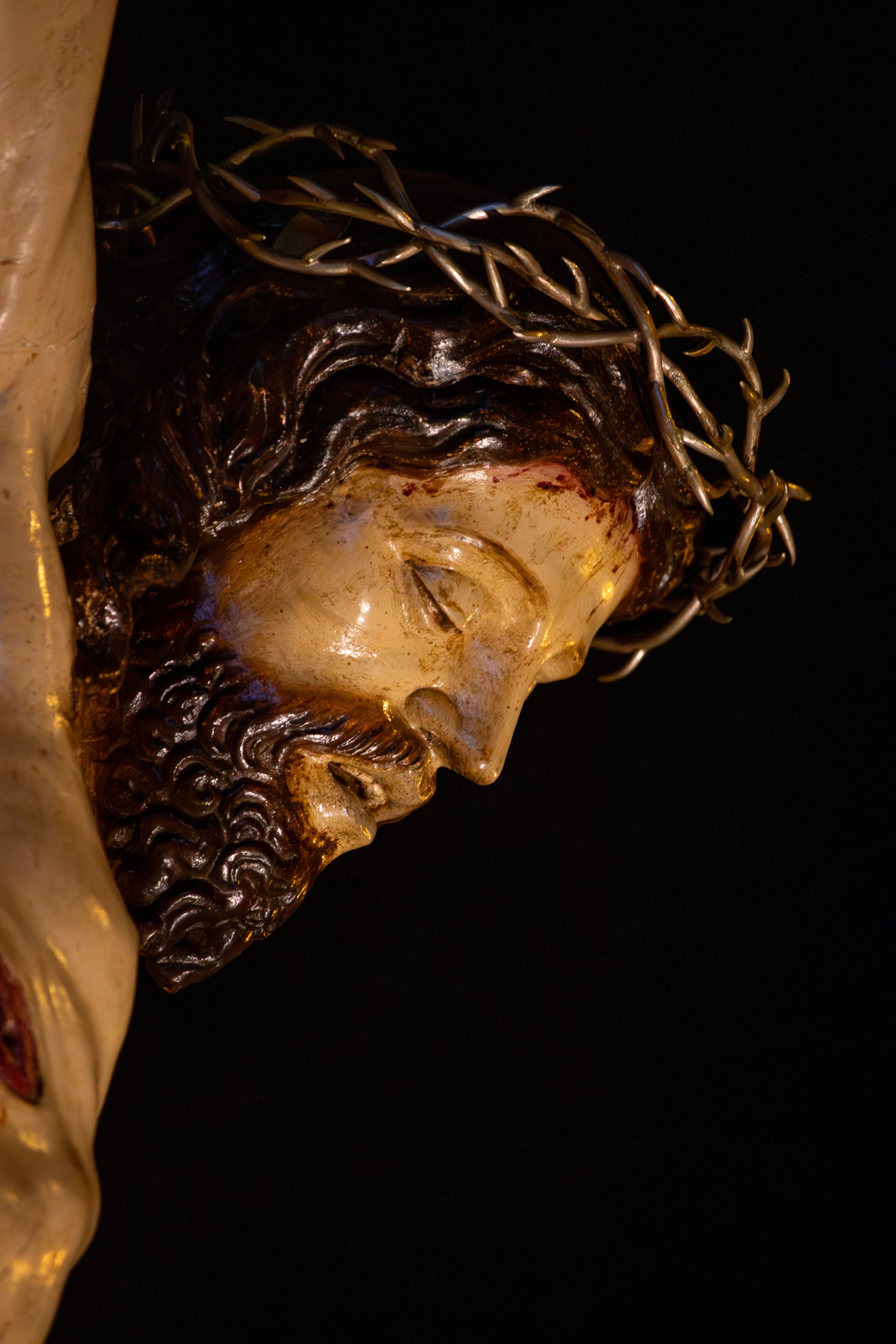 La talla, de lenguaje renacentista y líneas sobrias, muestra un cuerpo sereno, sin dramatismos forzados, que acentúa la dignidad del Crucificado.