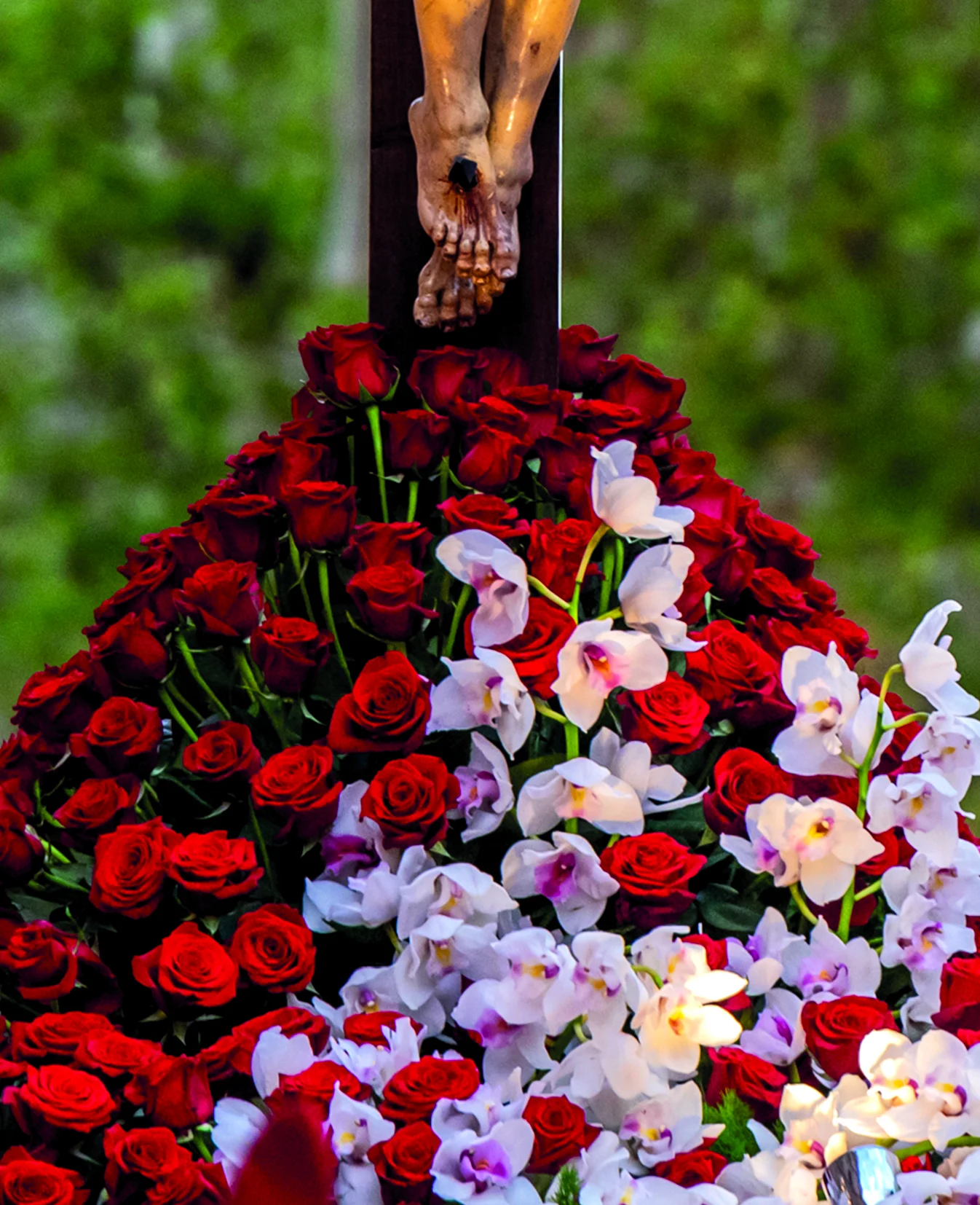 El paso del Santísimo Cristo de la Misericordia, atribuido a Domingo Beltrán en 1581 y llevado por 36 estantes, presenta a Cristo crucificado en el momento culminante de la Pasión, según los relatos evangélicos de la muerte del Señor, especialmente Juan 19,28-30, donde Jesús entrega el espíritu y consuma su misión.