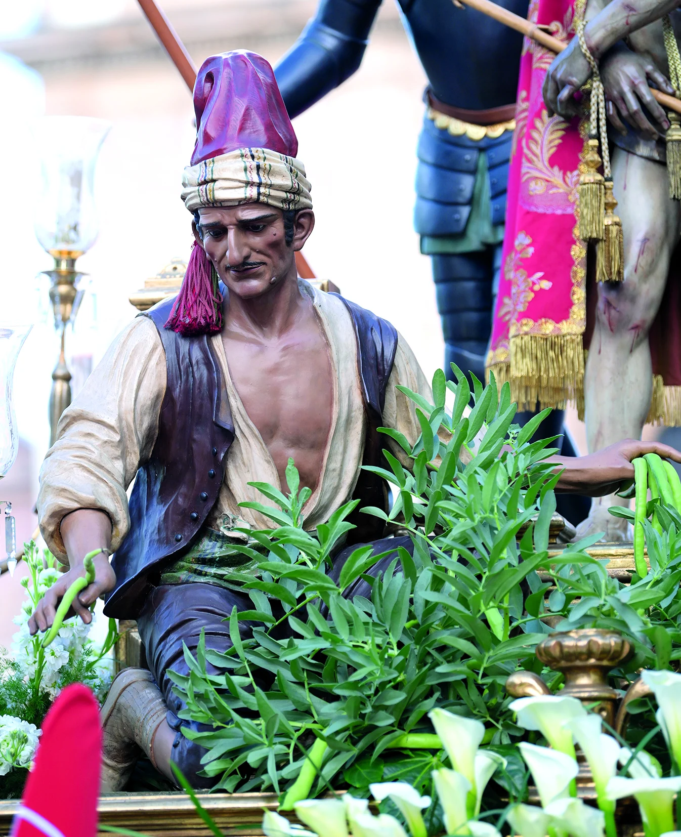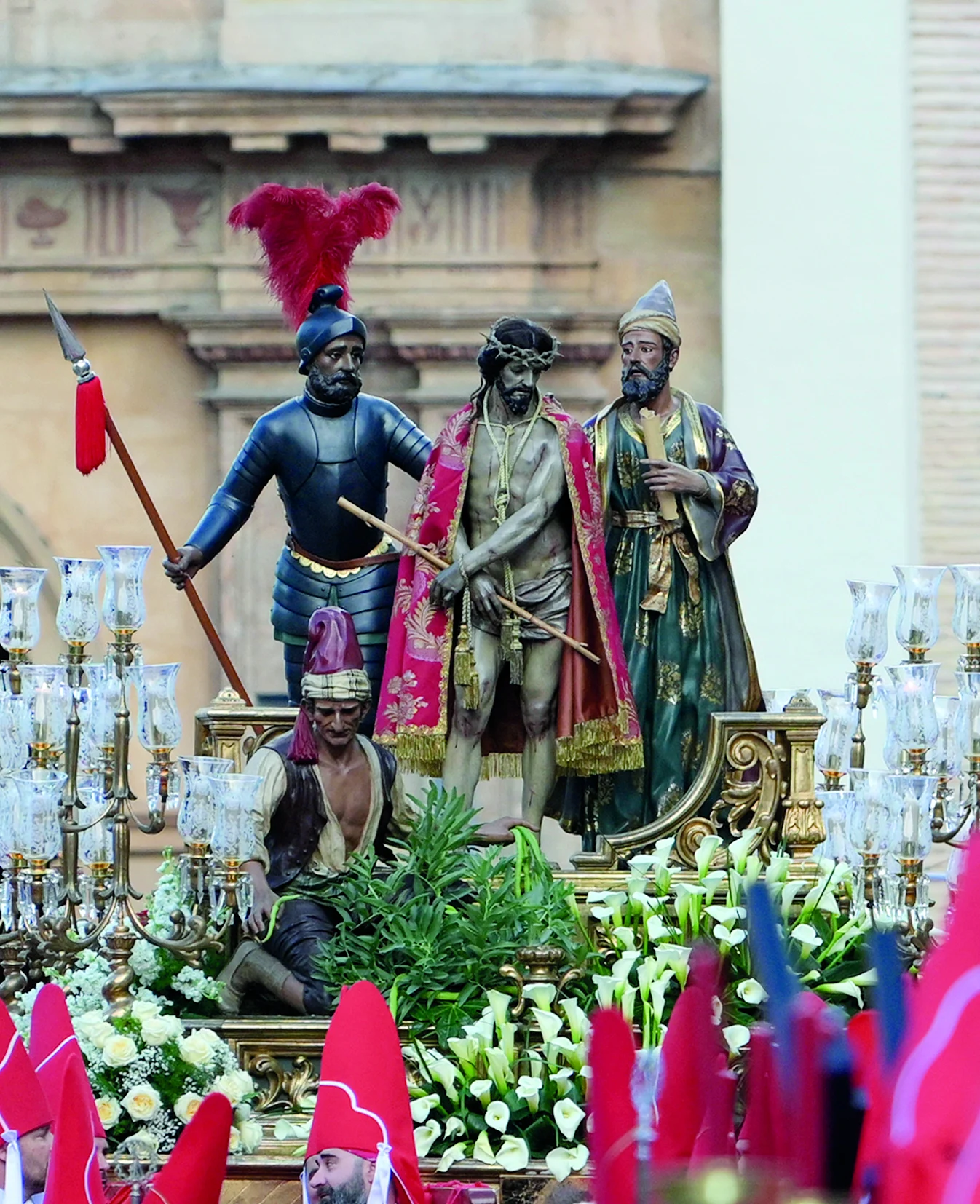 El paso de El Pretorio, con un Cristo de Nicolás de Bussy (1695), Pilato y el berrugo de José Sánchez Lozano (1945) y un soldado romano de Ramón Cuenca Santo (2011), portado por 28 estantes, representa el juicio ante Poncio Pilato narrado en los Evangelios, especialmente Juan 18,28–40 y 19,1–11.