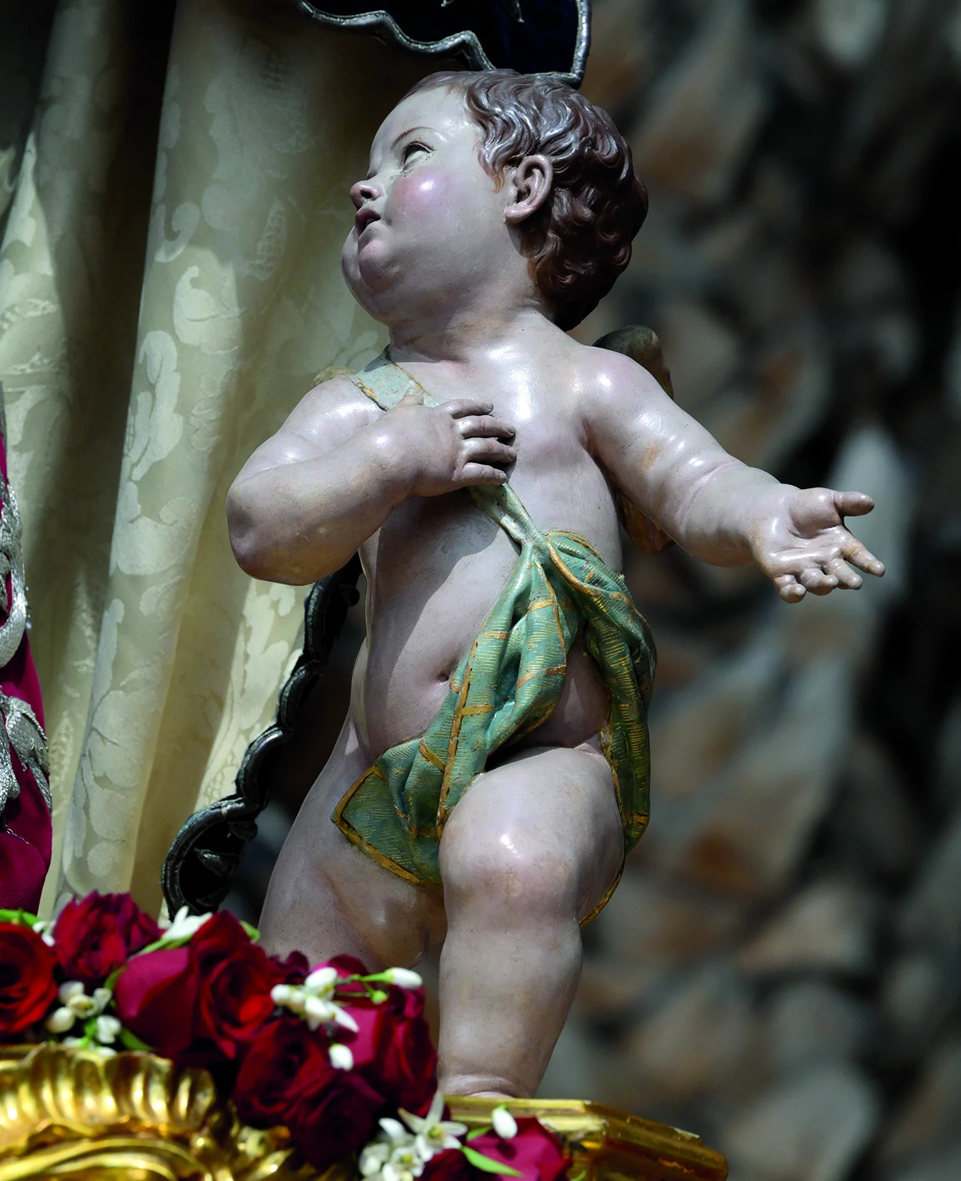 Salzillo la representa con un equilibrio ejemplar entre dolor y dignidad: rostro contenido, mirada elevada y una elegancia suave en los pliegues.