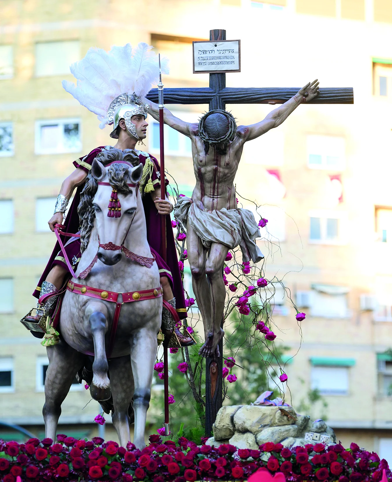 Bernal compone una escena clara y directa: el Crucificado sereno, el soldado en el gesto decisivo y un conjunto equilibrado que evita el dramatismo excesivo.