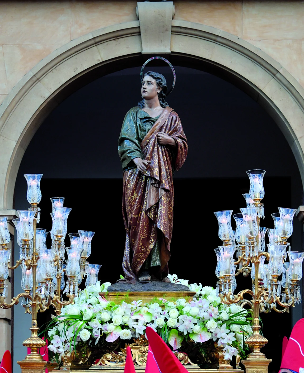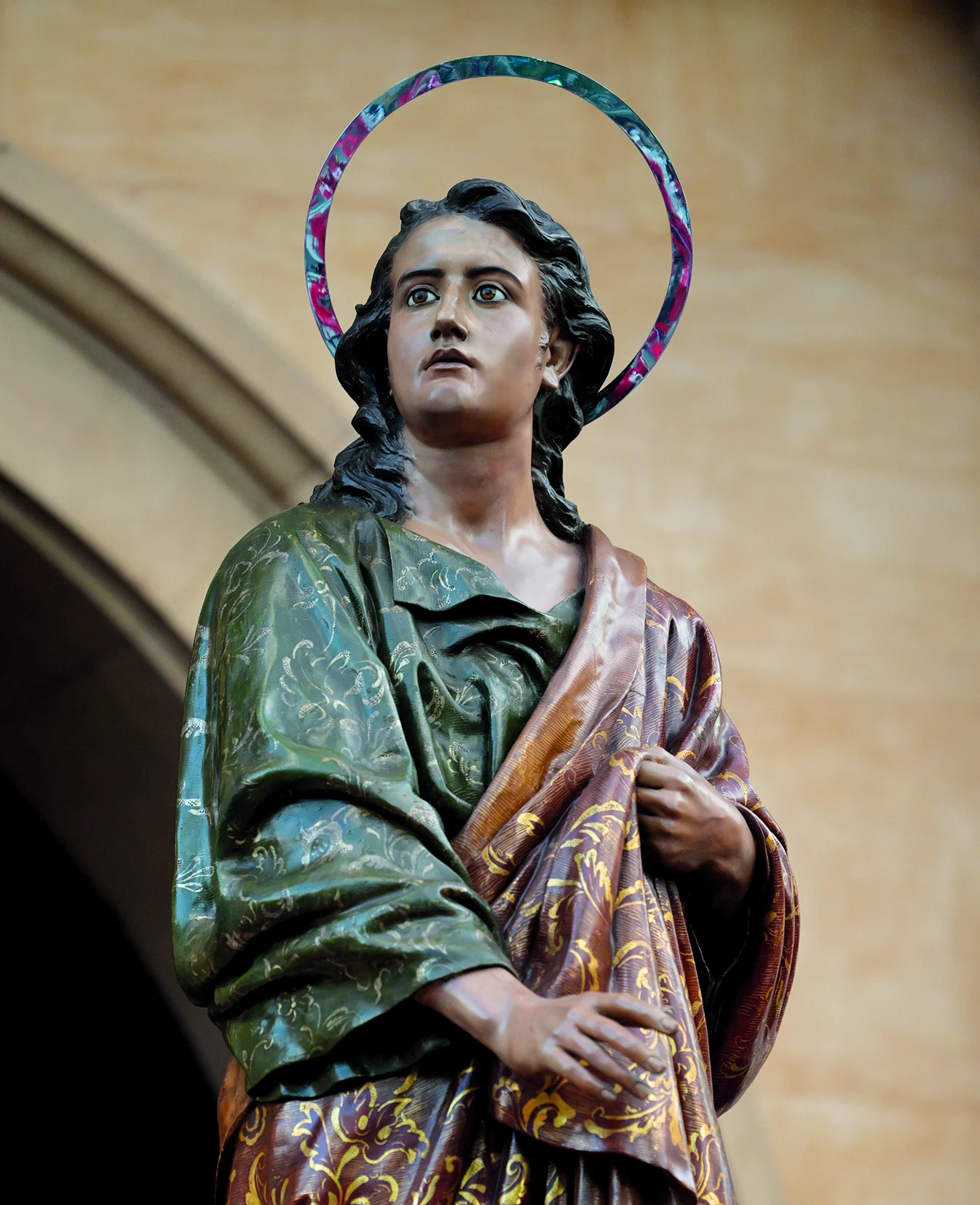 La figura de Dorado Brisa muestra al apóstol joven, sereno y atento, con una elegancia sobria propia de comienzos del siglo XX.